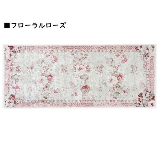 キッチンや玄関、お部屋のアクセントに ローズ柄が素敵なマルチロングマット。