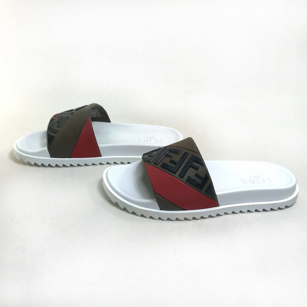 【商品情報】 【商品番号】40133-20615-6 ブランドフェンディ ラインズッカ FF モデルスリッポン タイプシャワー フラット 形状スライドサンダル 型番7X1377 対象メンズ カラーホワイト×ブラウン×レッド 素材ラバー サイズ 表記サイズ:7JP靴サイズ:25cmくつ幅:11cm実寸サイズには多少の誤差がある場合があります。