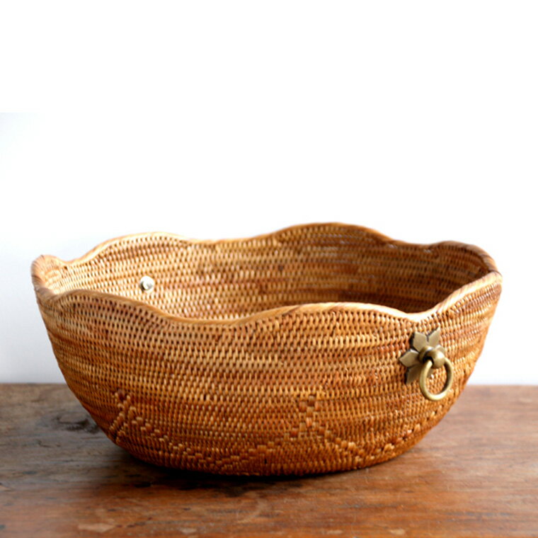 【ふるさと納税】アタ製品 真鍮お花取っ手ボールバスケット(24cm) 雑貨 小物入れ 収納 取っ手 インテリア グッズ バスケット 果物 フルーツ お菓子 オリジナル 数量限定 贈り物 プレゼント ギフト 手作り ハンドメイド バリ島雑貨 送料無料