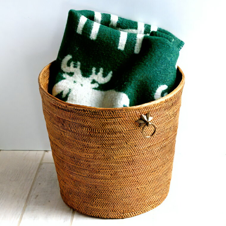 【ふるさと納税】アタ製品 真鍮星型取っ手深型バスケット(32cm) 雑貨 小物入れ 収納 バスケット 取っ手 インテリア グッズ オリジナル 数量限定 贈り物 プレゼント ギフト 手作り バリ島雑貨 アジア雑貨 千葉県 富津市 送料無料