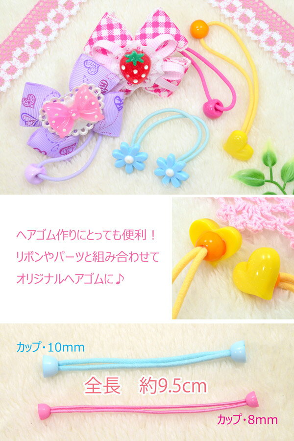 ※ゴムの太さ 両半カップゴム 2.2mm 小さい両半カップゴム 1.4mm カラー・タイプは全部で16色! お好きな色でオリジナルのヘアアクセに♪