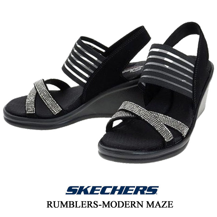 スケッチャーズ レディース サンダル SKECHERS RUMBLERS-MODERN MAZE 31587 BLK ランブラー モダン メイズ ブラック ウエッジ 厚底 靴