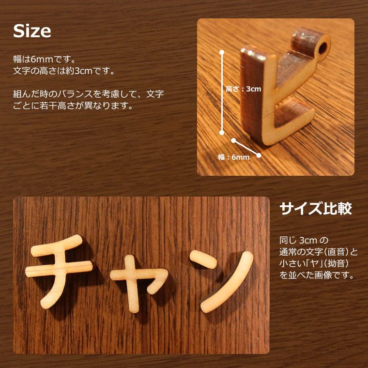 商品について 商品名 木製切り抜き文字(カタカナ:小さい文字、点付き、丸付き) 商品について 切り抜き文字のパーツです。